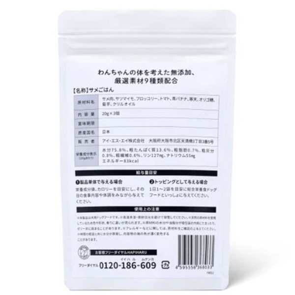 気仙沼で水揚げされた新鮮なサメ肉を贅沢に配合したおいしいフードです。