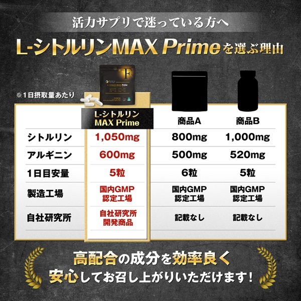 ◇本品は、従来品を強力にパワーアップいたしました。L-シトルリンを配合量31%UP、L-アルギニンも20%UPいたしました。このシトルリンの量は、ニンニク560房(個)分、アルギニンの量は胡麻7,400粒分に相当いたします。さらに人気ミネラルの亜鉛を15mgなど、ご満足いただけるスペックにしております。