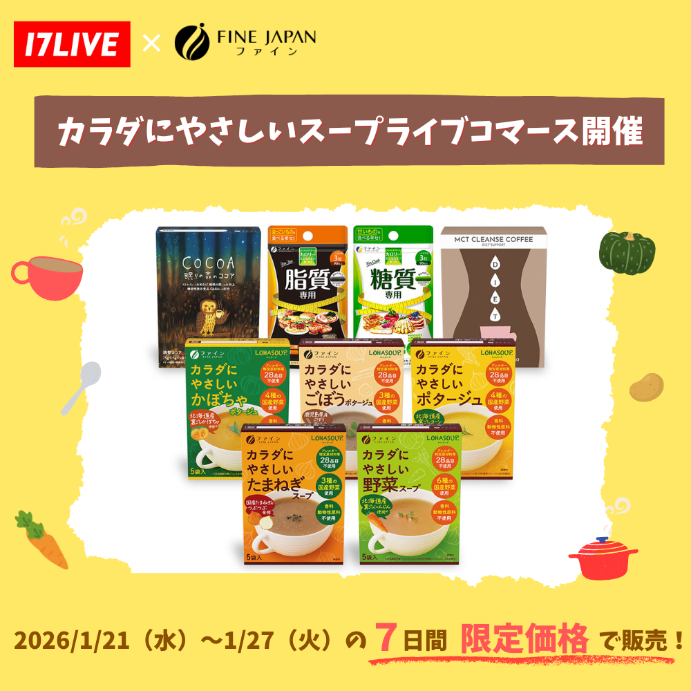 17LIVE限定クーポン! 1/27(火)まで期間限定20%OFF!